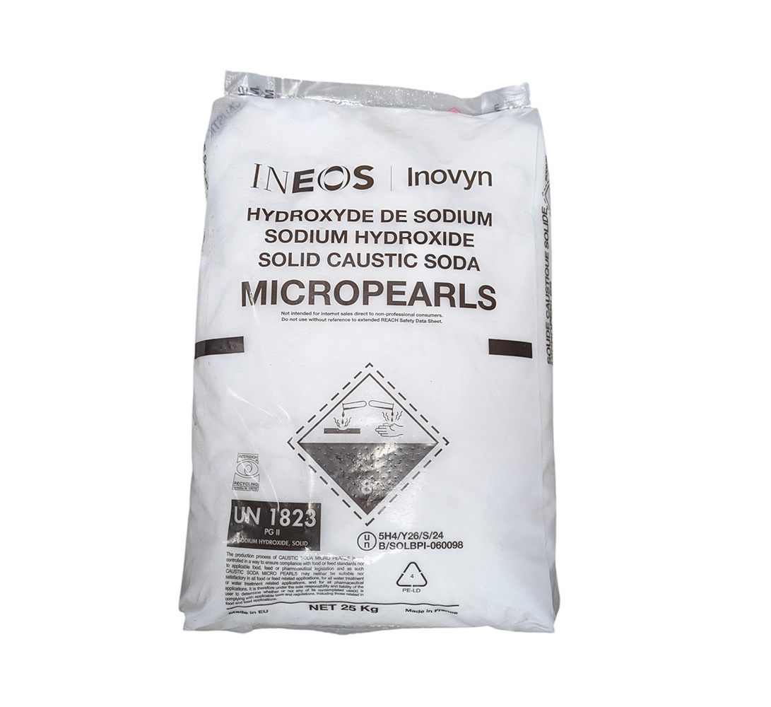 La Soude Caustique Micro-perles (Hydroxyde de Sodium solide) est un produit chimique industriel polyvalent de haute pureté. Présentée sous forme de micro-perles, elle offre une manipulation facilitée et une dissolution rapide. Ce conditionnement en sac de 25 kg par INEOS Inovyn est destiné aux usages professionnels exigeants, notamment pour le nettoyage, le dégraissage et le décapage.