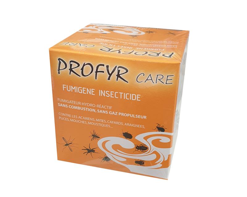 Le PROFYR CARE est un fumigateur insecticide hydro-réactif innovant agissant sans combustion et sans gaz propulseur. Formulé à base de cyphénothrine, il diffuse de fines particules pénétrant dans les moindres recoins pour une éradication totale des insectes rampants et volants.