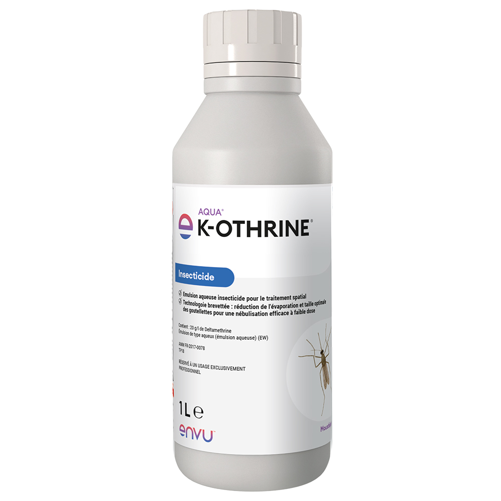 L'Aqua K-Othrine® est une émulsion aqueuse insecticide (EW) concentrée, spécialement conçue pour le traitement spatial des moustiques adultes et vecteurs de maladies. Formulé à base de deltaméthrine (20 g/L), cet adulticide utilise une technologie brevetée pour optimiser la nébulisation à faible dose. Conditionné en bidon de 1 litre, il assure un abattage rapide et une mortalité élevée des nuisibles sans laisser d'odeur ni de taches.