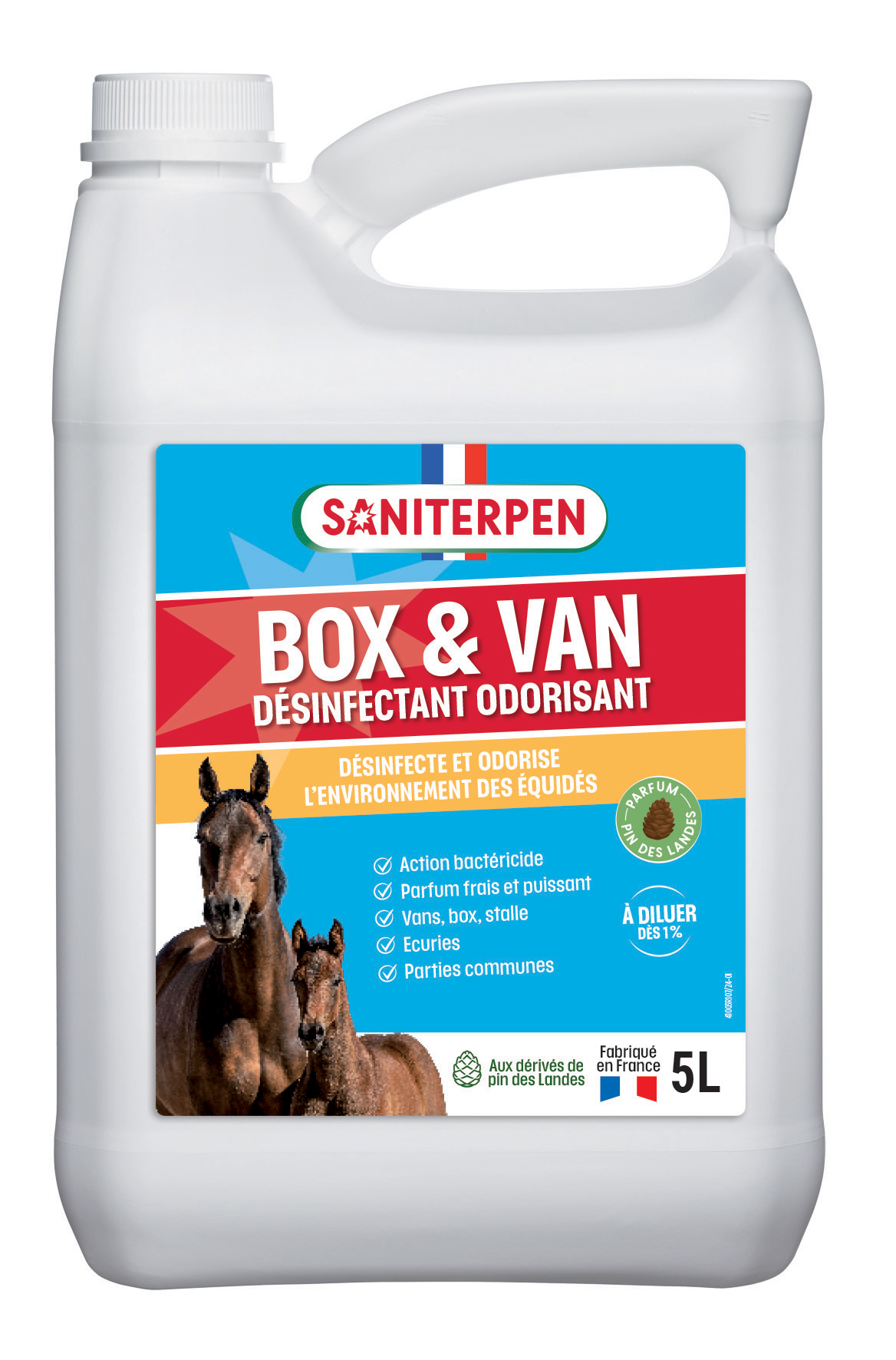 Désinfectant et odorisant pour les box, vans, écuries et les camions de chevaux.