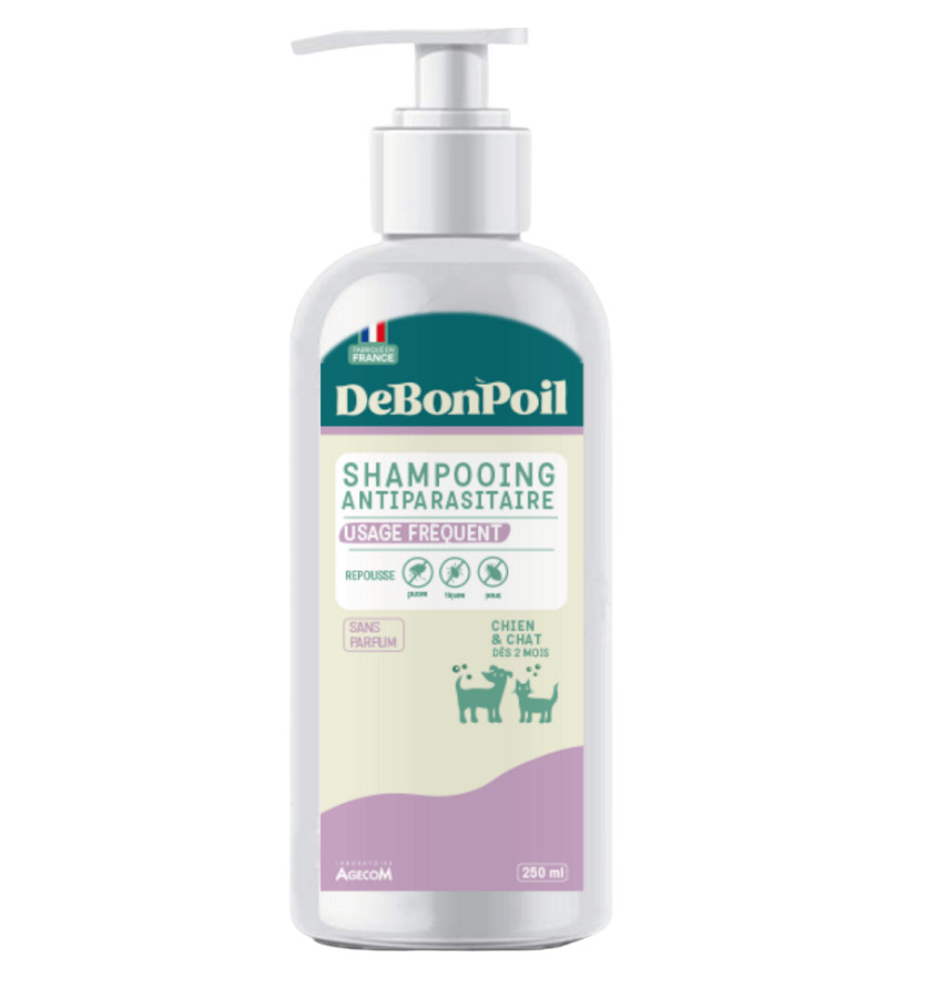 Tous les animaux n'apprécient pas les produits parfumés, et certains propriétaires préfèrent la neutralité pour ne pas perturber le flair de leur compagnon. Le laboratoire Agecom a conçu le shampooing DeBonPoil Usage Fréquent Sans Parfum pour offrir une hygiène irréprochable et une protection antiparasitaire sans compromis sensoriel.