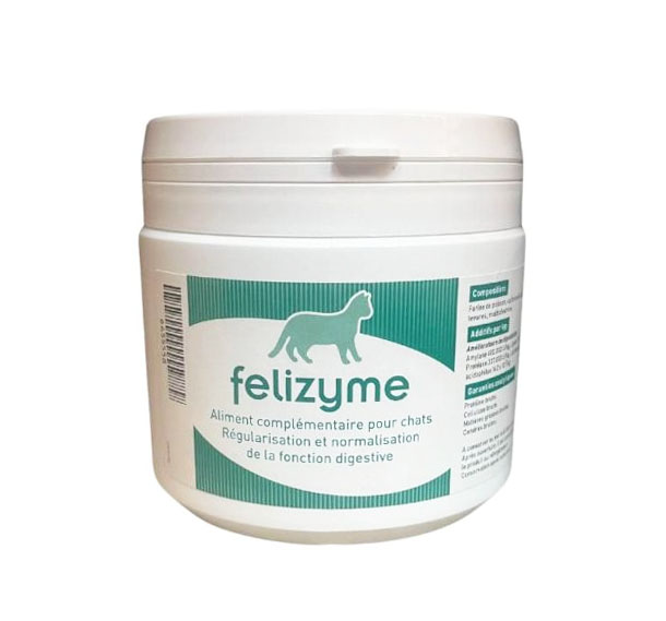 Felizyme (180 g) est un aliment complémentaire en poudre spécialement formulé pour régulariser et normaliser la fonction digestive des chats. Grâce à l'action combinée d'enzymes naturelles (Amylase, Protéase, Lipase), il favorise une assimilation optimale des nutriments et réduit significativement les troubles intestinaux comme les ballonnements ou les selles molles.