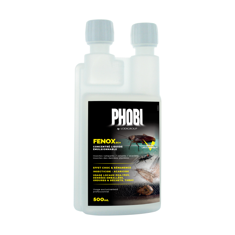 Le Phobi FENOX EC+ est un concentré liquide insecticide et acaricide à large spectre, formulé à base d'Etofenprox. Spécialement conçu pour les lieux sensibles (écoles, hôpitaux, stockages alimentaires), il offre une action choc foudroyante doublée d'une rémanence exceptionnelle allant jusqu'à 3 mois sur tous types de surfaces.
