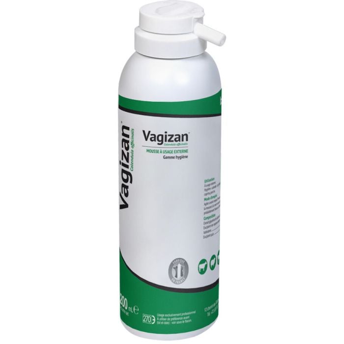 Vagizan® est un soin d'hygiène cutanée et génitale sous forme de mousse expansive, spécifiquement formulé avec de l'extrait de Calendula officinalis. Conçu pour un usage externe chez les bovins, ovins et caprins, ce produit d'hygiène aide à réduire les inflammations et favorise une cicatrisation rapide des petites blessures.