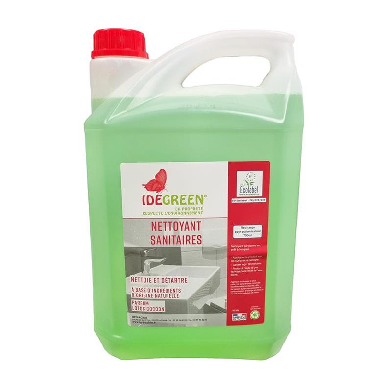 Nettoyant sanitaire prêt à l'emploi qui possède l'écolabel européen, une référence en matière de respect de l'environnement, garantissant une efficacité élevée, une sécurité pour les utilisateurs, l'environnement et la santé.