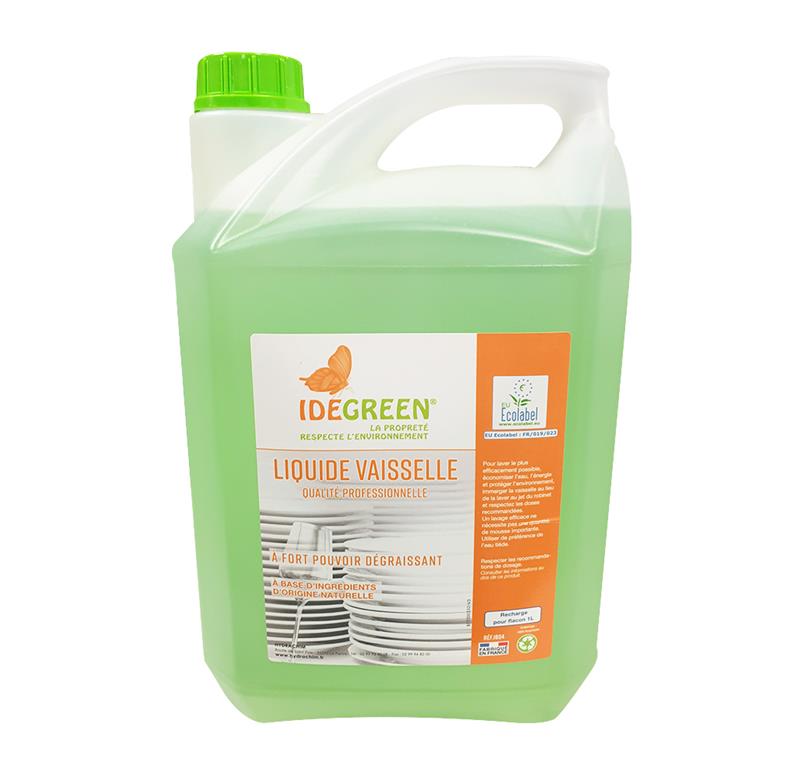 Liquide vaisselle détergent et dégraissant qui possède l'écolabel européen, une référence en matière de respect de l'environnement, qui garantit une efficacité élevée, une sécurité pour les utilisateurs, l'environnement et la santé.