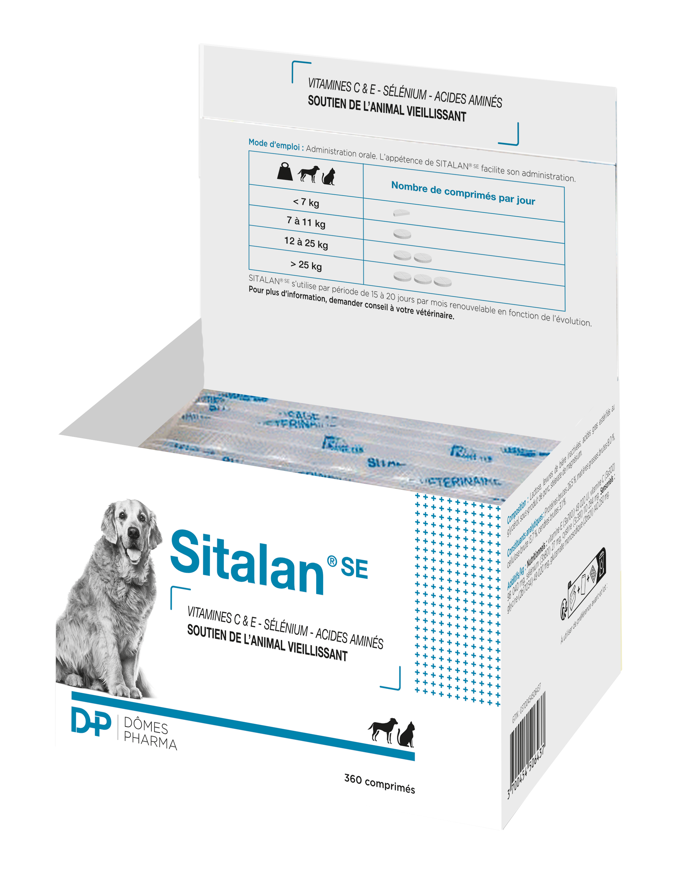 SITALAN SE est un complément nutritionnel de référence pour répondre aux besoins physiologiques du cristallin sénescent et stimuler le métabolisme général des chiens et chats âgés. Ce format généreux de 360 comprimés est idéal pour les traitements de longue durée ou pour les propriétaires de plusieurs animaux seniors. Sa formule antioxydante complète aide à freiner le vieillissement cellulaire et à maintenir la vitalité de votre compagnon.