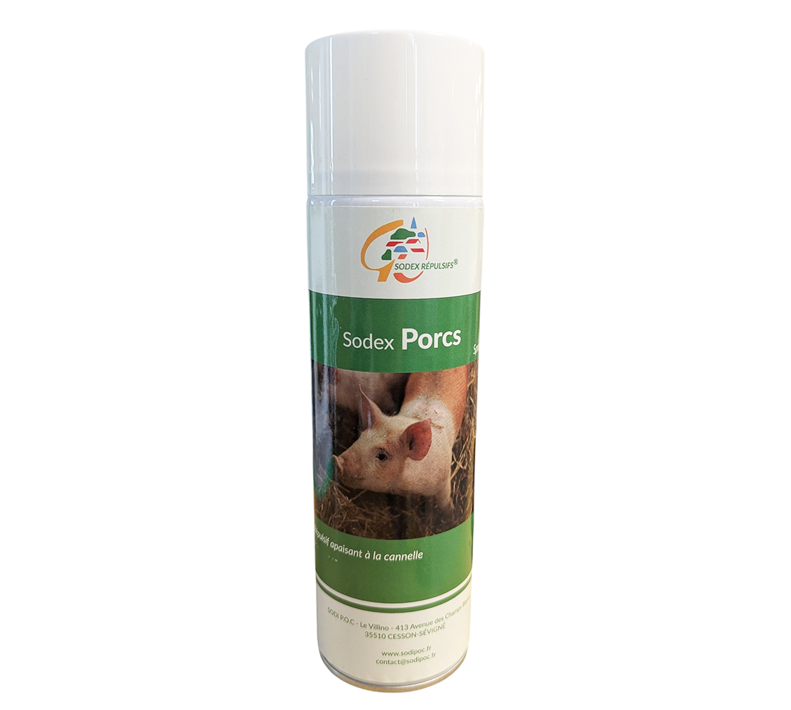 L'aérosol SODEX Porcs est une solution répulsive et apaisante conçue pour prévenir les comportements agressifs et le cannibalisme au sein des élevages. Grâce à sa nouvelle formule parfumée à la cannelle, cet aérosol de 650 ml permet de calmer rapidement les animaux et d'empêcher les bagarres lors de situations de stress ou de regroupements.