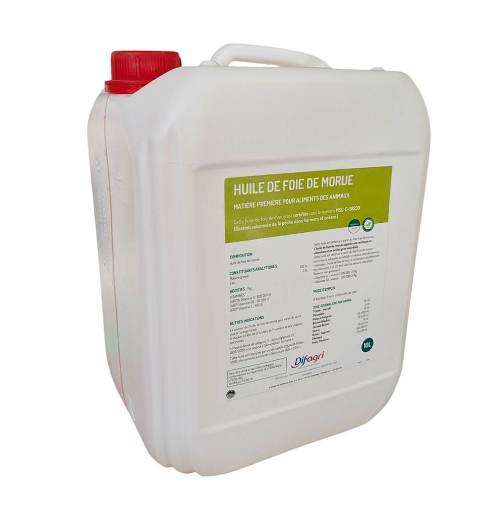 L'huile de foie de morue Difagri est obtenue à partir de foies frais, garantissant une pureté et une richesse nutritionnelle maximale. Elle apporte une recharge immédiate en nutriments que l'organisme animal ne peut synthétiser seul.