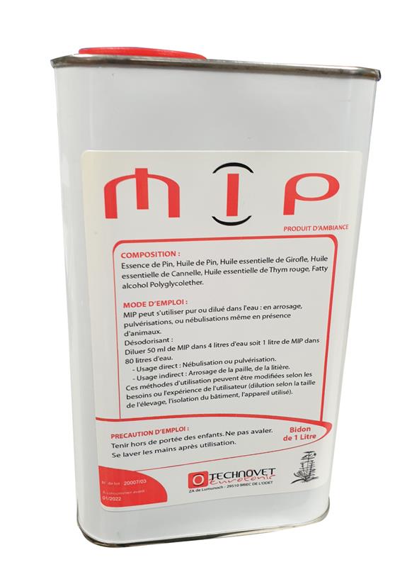 Le MIP 1 Litre est un produit naturel concentré destiné à l'hygiène de l'atmosphère et à la désodorisation des locaux accueillant des animaux. Formulé à partir d'un mélange d'huiles essentielles puissantes (Thym, Cannelle, Girofle et essence de Pin), il assure un environnement sain et laisse une odeur boisée et épicée très agréable. Sa polyvalence permet une utilisation pure ou diluée, par arrosage, pulvérisation ou nébulisation, même en présence des animaux.