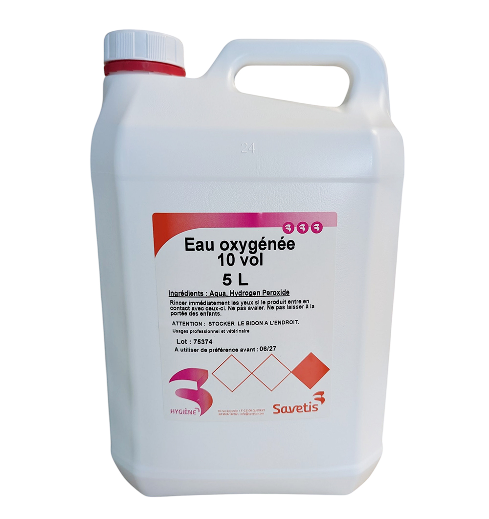 Le peroxyde d'hydrogène à 3% (10 volumes) proposé par Savetis est une solution polyvalente pour maintenir une biosécurité optimale au sein de votre structure. Son action oxydante permet un nettoyage mécanique efficace des zones souillées tout en aidant à contrôler les petits saignements.
