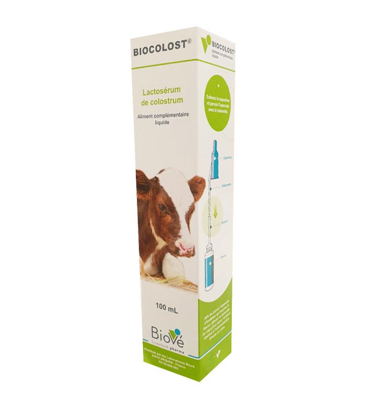 BIOCOLOST® (100 ml) est un aliment complémentaire liquide à base de lactosérum de colostrum, spécialement conçu pour les premiers jours de vie des veaux, agneaux et chevreaux. Il apporte les agents protecteurs essentiels pour permettre une élévation rapide des capacités de défense de l'organisme du nouveau-né.