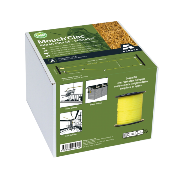 Le contrôle des mouches dans les zones d'élevage est un enjeu majeur pour le confort des animaux et la productivité. Le MOUCH'CLAC® Ruban est un système de piège professionnel qui se distingue par sa capacité de capture monumentale et sa facilité d'utilisation. Il est l'allié idéal des exploitations agricoles, des haras et des zones de soins animaliers.