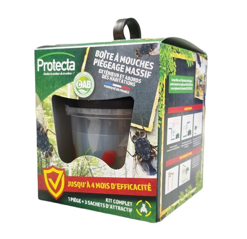 La Boîte à Mouches MOUCH'CLAC ® est un système de piégeage massif conçu spécifiquement pour l'extérieur et les abords de l'habitat. Ce kit complet, livré avec 3 sachets d'attractif, offre jusqu'à 4 mois d'efficacité grâce à ses appâts hydrosolubles enrichis en enzymes pour une capture foudroyante et écologique.