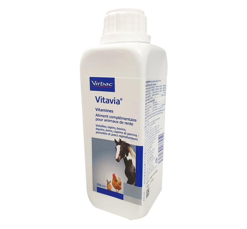 VITAVIA® est un aliment complémentaire polyvitaminé sous forme d'hydrosol, conçu par Virbac pour répondre aux besoins de toutes les espèces animales (volailles, lapins, bovins, équins, ovins, caprins et porcins). Ce complexe apporte l'ensemble des vitamines nécessaires pour sécuriser les phases critiques de la vie animale sans altérer la saveur des produits issus de l'élevage.
