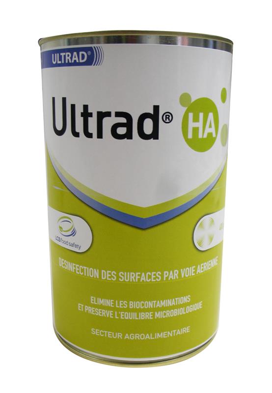 Le produit Ultrad HA va libérer dans le volume à traiter hors présence de tout opérateur, une matière désinfectante (Acide Hydroxyacétique) agissant par contact sur les bactéries végétatives, les levures et les moisissures.