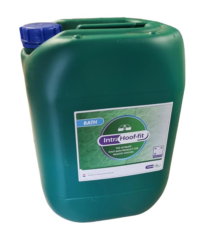 HOOF FIT BATH est une solution concentrée pour pédiluve destinée au traitement des affections cutanées du pied chez les ruminants (dermatites, nécroses, piétin). Particulièrement efficace contre la maladie de Mortellaro, sa formule unique à base de minéraux chélatés et d'Aloe Vera assure des sabots forts et une peau saine sans utiliser de sulfate de cuivre.