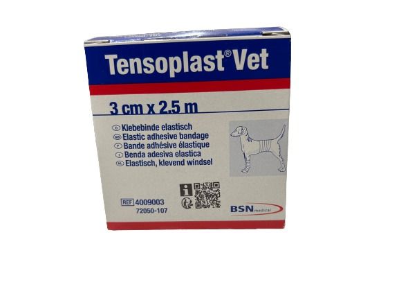 Développée par BSN Medical, la bande adhésive Tensoplast Vet 3 cm x 2,5 m est idéale pour la fixation des pansements et le maintien en contention chez les animaux.