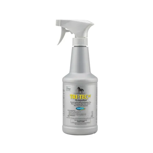 Le TRI-TEC 14 en format généreux de 946 ml est un insecticide prêt à l'emploi conçu pour l'environnement du cheval, offrant une barrière protectrice imbattable. Grâce à sa formule exclusive, il assure une action immédiate contre les insectes volants et une rémanence exceptionnelle allant jusqu'à 14 jours.