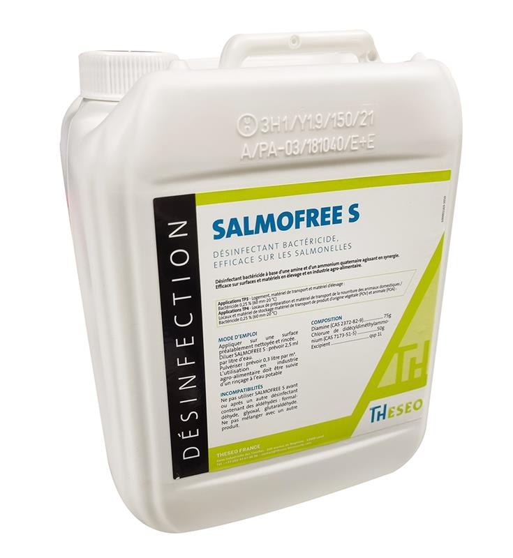 Le SALMOFREE S est un désinfectant bactéricide de haute performance, spécifiquement formulé pour éliminer les salmonelles sur les surfaces et le matériel. Utilisable aussi bien en élevage qu'en industrie agro-alimentaire, il agit grâce à une synergie entre une amine et un ammonium quaternaire pour une efficacité maximale, même en présence de matières organiques.