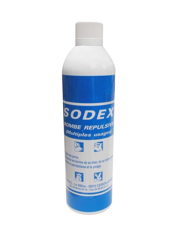 La Sodex Bombe Répulsive est un aérosol multi-usages de 650 ml doté d'une nouvelle formule ultra-efficace pour réguler les comportements indésirables en élevage. Grâce à son odeur forte de cannelle, elle repousse les animaux, masque les odeurs corporelles et stoppe l'agressivité mutuelle (picage, cannibalisme, morsures).