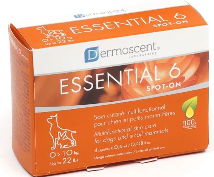 Votre petit chien ou votre lapin a le poil terne, des pellicules ou une mauvaise odeur ? Dermoscent Essential 6 Spot-on (0-10 kg) est le 1er soin cutané multifonctionnel 100% naturel adapté aux petits animaux. En un geste simple de 2 secondes, il restaure le film hydrolipidique, purifie la peau et remplace la prise de compléments alimentaires (Oméga 3 & 6).