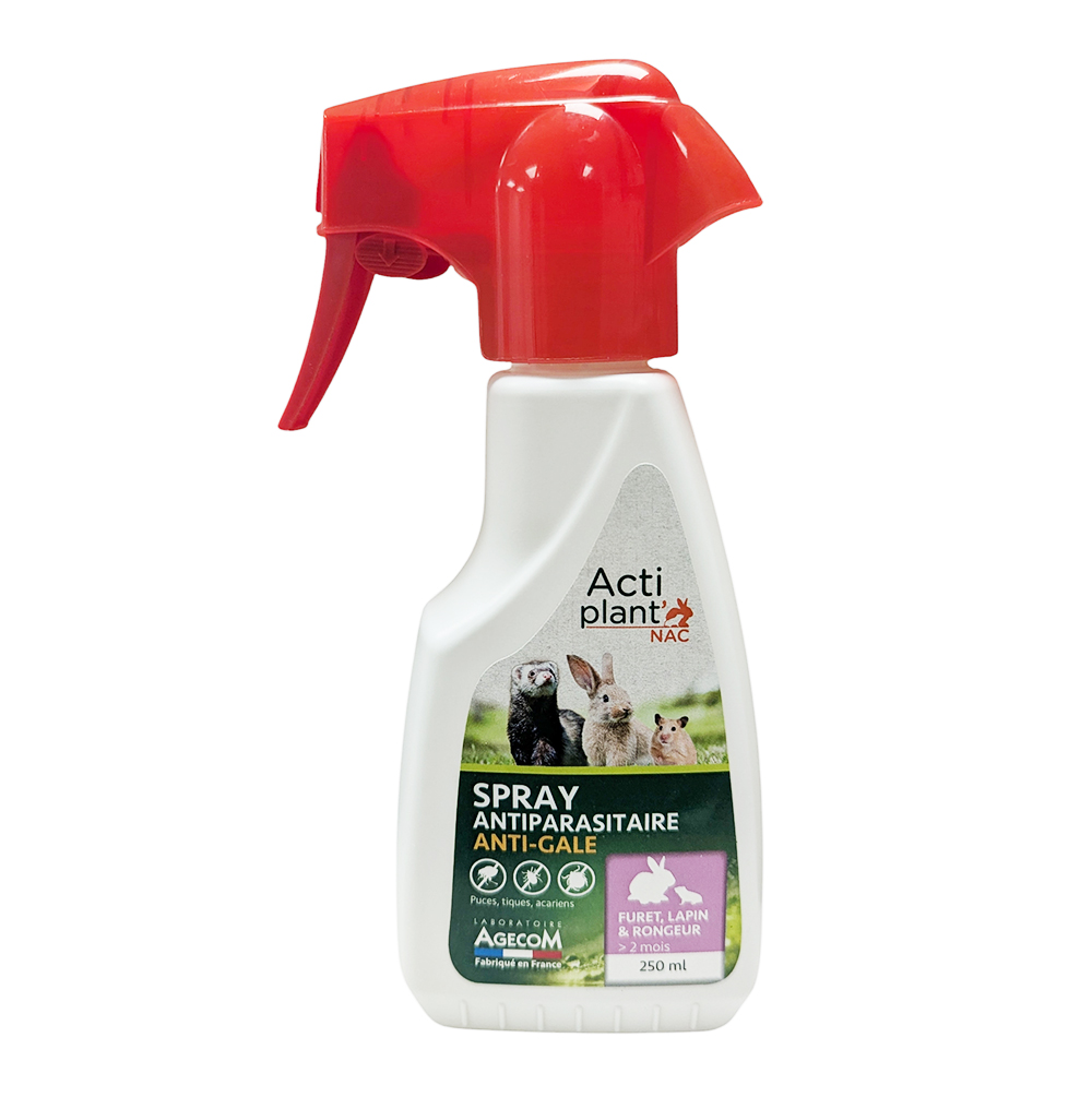 Les Nouveaux Animaux de Compagnie (NAC) comme les lapins, les cochons d'Inde ou les furets sont particulièrement sujets aux parasites externes, et notamment aux acariens responsables de la gale (gale des oreilles, gale du corps). Le spray Actiplant offre une réponse ciblée et naturelle à ces désagréments.