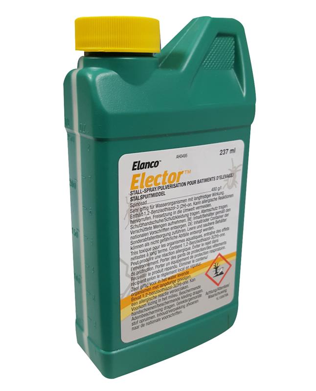 Elector™ est un biocide insecticide de haute performance conçu par Elanco Animal Health pour lutter efficacement contre les poux rouges (Dermanyssus gallinae) et les ténébrions (Alphitobius diaperinus) en élevage avicole. Formulé à base de spinosad (480 g/L), il agit par contact et ingestion sur le système nerveux des parasites. Cette solution concentrée est utilisable en agriculture biologique (conformément au règlement CE n° 834/2007) et permet une gestion sanitaire sans interruption de la production.