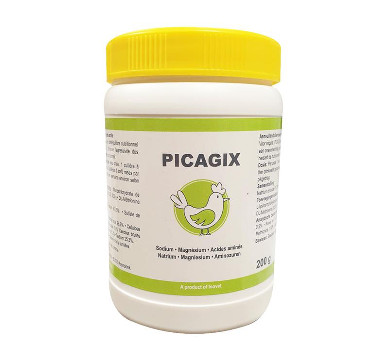 PICAGIX (200 g) est un supplément nutritionnel spécifiquement formulé pour les volailles de basse-cour et le gibier. Il agit efficacement pour éliminer le phénomène de picage lorsqu'il est lié à un déséquilibre alimentaire, tout en contribuant à diminuer l'agressivité naturelle des oiseaux.