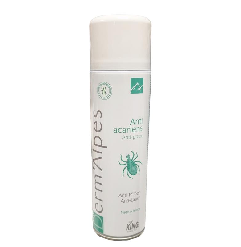 Assainissez votre intérieur avec l'aérosol King Derm'Alpes, le traitement de référence contre les acariens et les poux. Efficace à 100% sur tous les stades (larves, nymphes, adultes), il traite la literie et l'habitat pour prévenir les allergies et la recontamination humaine. Action longue durée (60 jours).