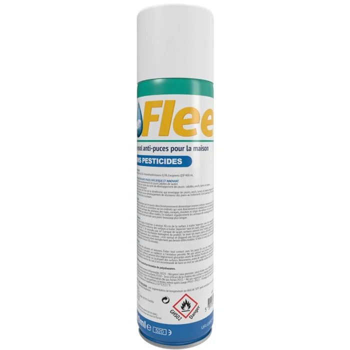 L'aérosol Flee est une solution unique de 400 ml pour le contrôle des puces et des acariens dans l'environnement domestique. Contrairement aux produits classiques, il agit de manière mécanique et est sans pesticides, ce qui le rend idéal pour les foyers avec enfants ou animaux allergiques.