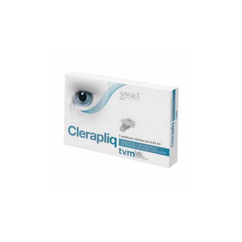 Clerapliq est un collyre innovant des laboratoires TVM, conçu comme un substitut de matrice extracellulaire pour favoriser la réparation oculaire chez les animaux. Utilisant la technologie des RGTA (Agents de Régénération), il aide à restaurer l'intégrité de la cornée chez les chiens, chats, chevaux et NAC. Présenté en boîte de 5 unidoses stériles de 0,33 ml, il assure une application hygiénique et précise.