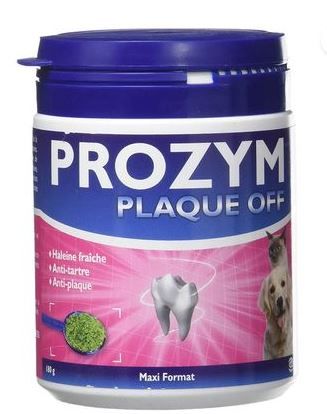 Prozym Plaque Off réduit la plaque dentaire, diminue la formation du tartre et combat la mauvaise haleine.