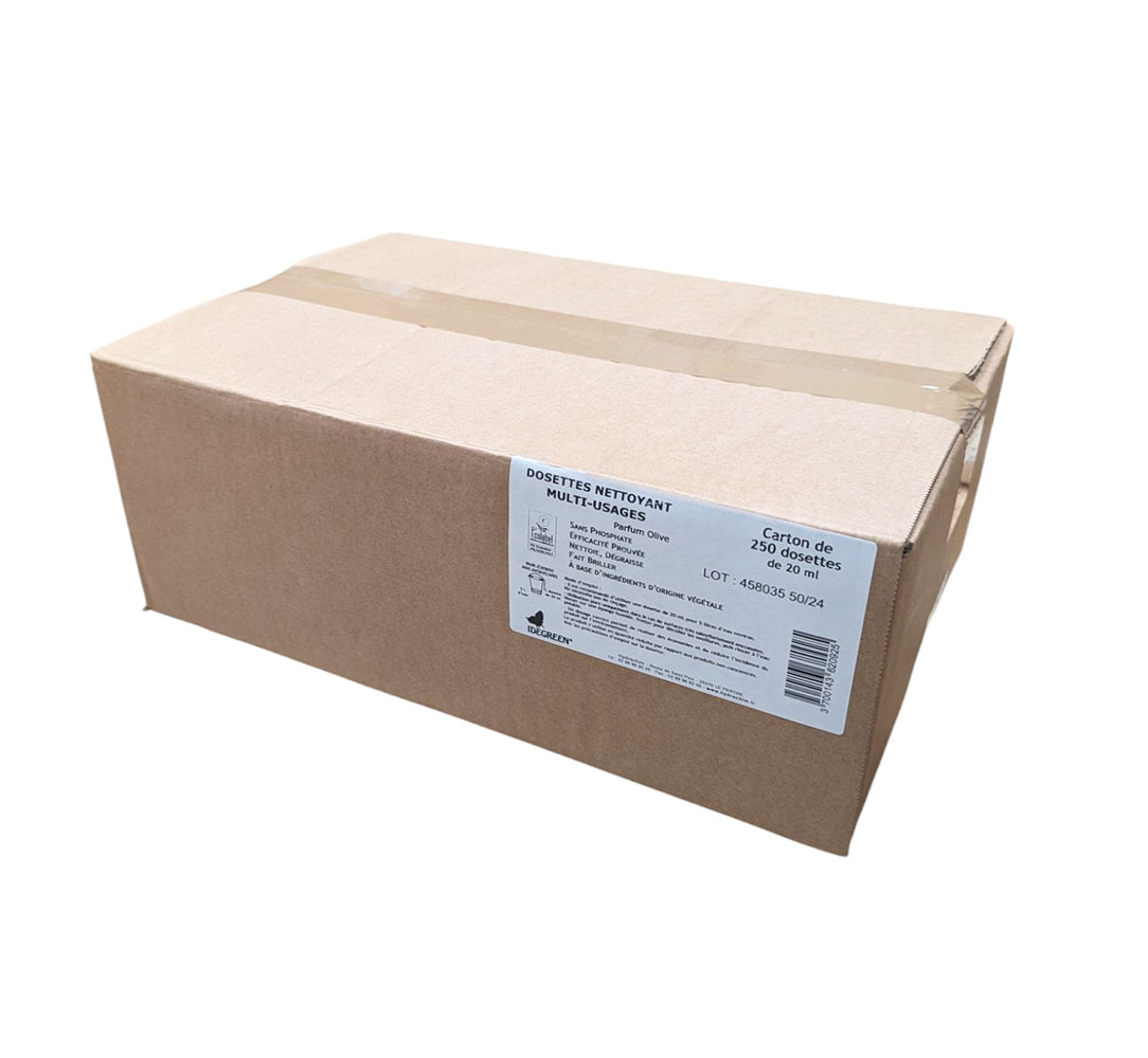 Dosette Ecolabel nettoyante multi-usages parfum olive.