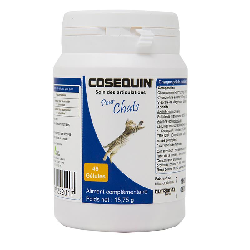 Cosequin chat aliment complémentaire pour les articulations avec une action sur le cartilage en cas d'arthrose des chats de toutes tailles.