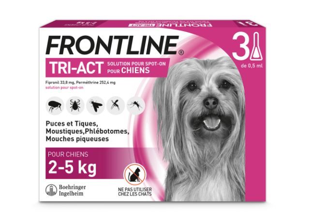 Les chiens "toy" ou miniatures sont particulièrement vulnérables aux parasites en raison de leur petite taille (proximité du sol). Pour les protéger des puces, mais aussi des dangers volants, Frontline Tri-Act propose une formule sur-mesure pour les chiens de 2 à 5 kg.