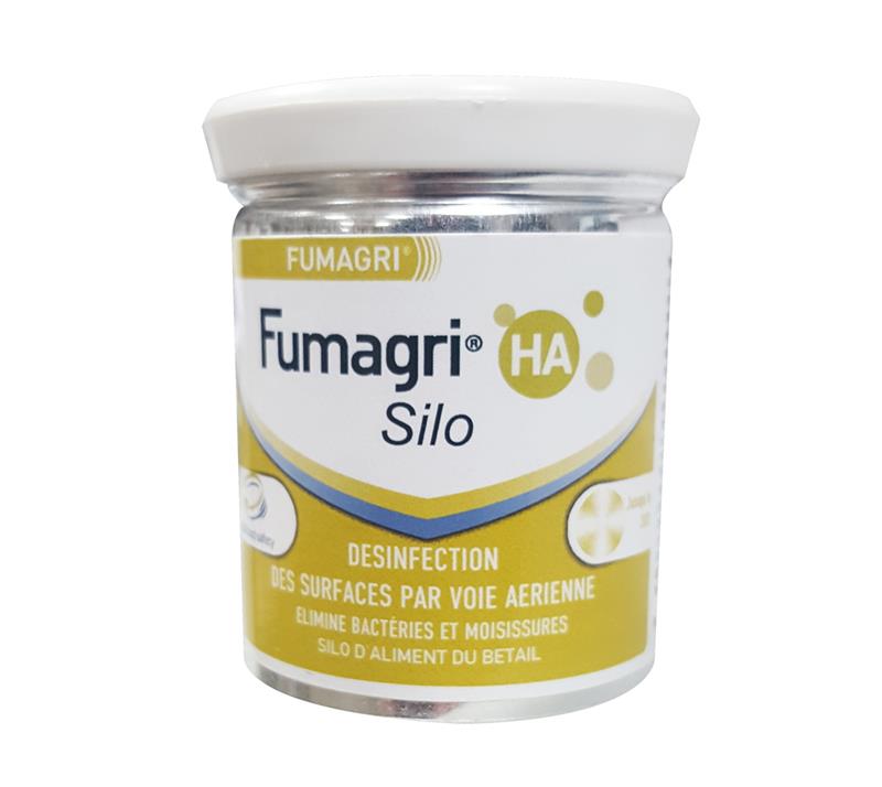 Le FUMAGRI® HA Silo est un désinfectant fumigène par voie aérienne spécifiquement conçu pour l'assainissement des silos d'aliments du bétail et des citernes de transport. Sa formule bactéricide, fongicide et levuricide permet de traiter efficacement des volumes allant jusqu'à 20 tonnes. Utilisable en agriculture biologique, il constitue une barrière indispensable contre les salmonelles et les mycotoxines.