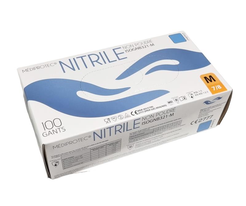 Gants nitrile bleu non poudrés Taille 7/8 M