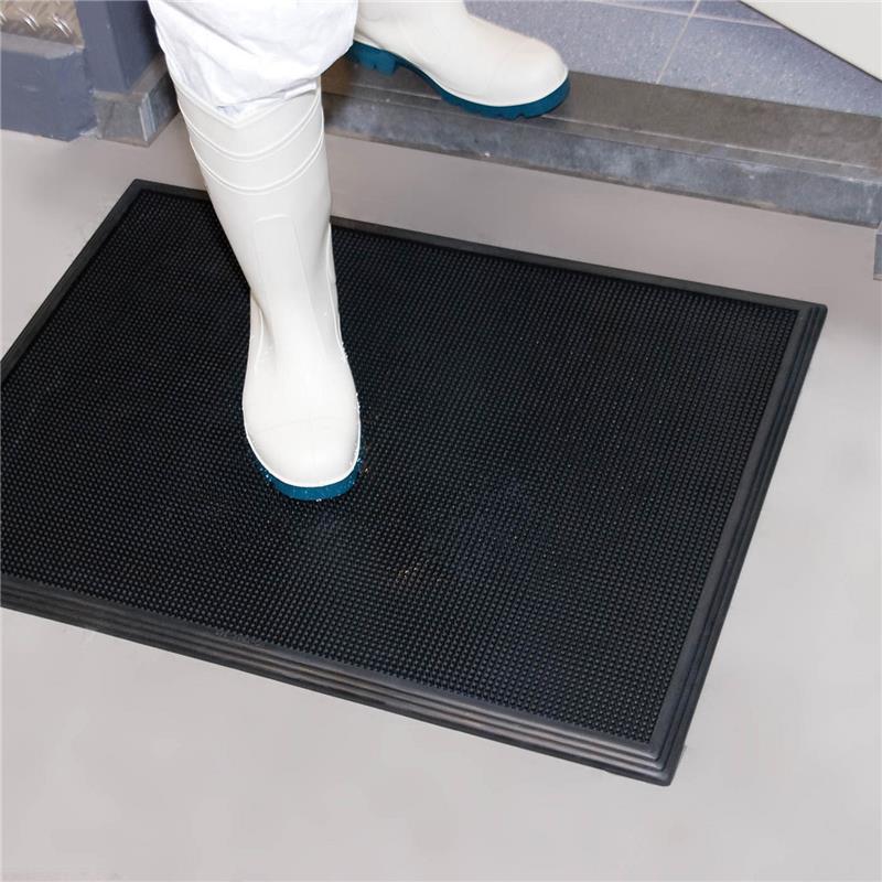 L'hygiène des sols commence par des semelles propres. Le tapis Sani Trax ne se contente pas de stocker du liquide, il nettoie activement les chaussures grâce à une conception ingénieuse, idéale pour les laboratoires, cuisines centrales et usines de transformation.