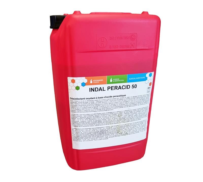 L'INDAL PERACID 50 est un désinfectant oxydant à large spectre et à action rapide, formulé à base d'acide péracétique et de peroxyde d'hydrogène. Spécialement conçu pour les environnements exigeants comme l'industrie agroalimentaire, la viticulture et le secteur hospitalier, il assure une désinfection totale et une action détartrante efficace. Ce produit est autorisé pour le nettoyage des surfaces en contact avec des denrées alimentaires et est utilisable en Agriculture Biologique.
