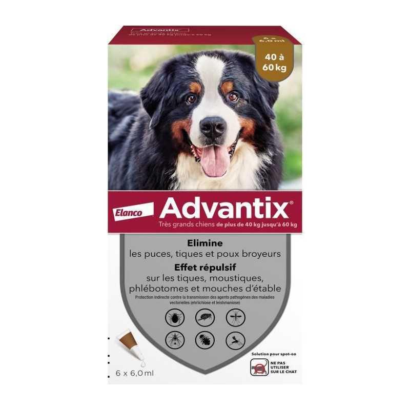 Advantix bénéficie en plus d'une action répulsive qui ne se contente pas de tuer les parasites, mais de les repousse également, évitant ainsi le risque de contact entre le parasite et votre chien.