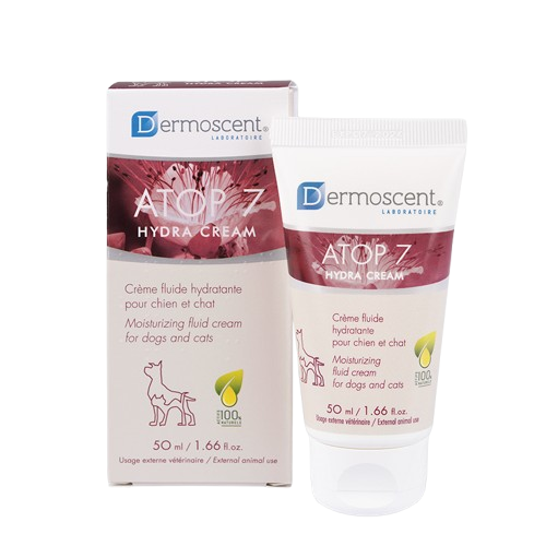 Votre animal a la peau sèche ou des zones rugueuses ? Dermoscent ATOP 7 Hydra Cream est une crème fluide hydratante spécialement conçue pour les chiens et chats. Sa formule 100% naturelle nourrit en profondeur, assouplit l'épiderme et renforce la barrière cutanée des peaux déshydratées ou à tendance atopique, sans laisser de film gras.