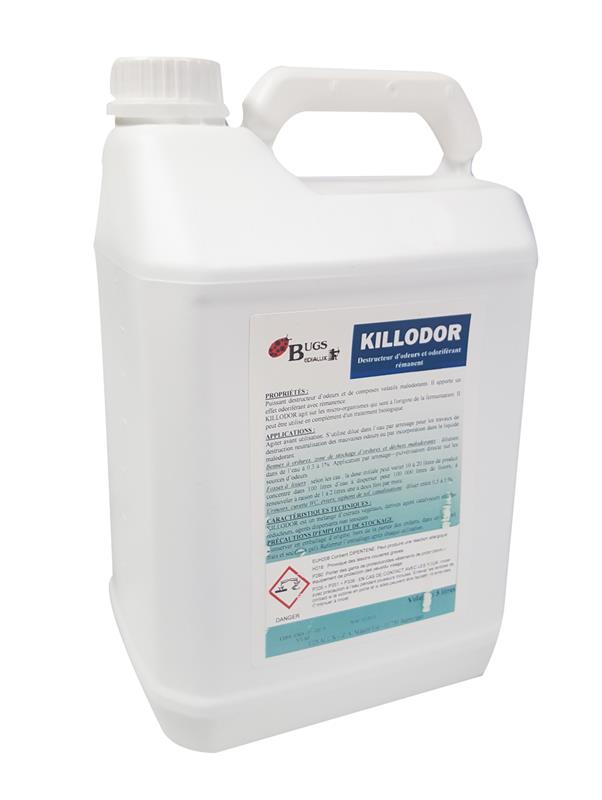 Peut-on l'utiliser pour nettoyer les sols ? KILLODOR est un additif de traitement d'odeur, pas un détergent. Vous pouvez cependant l'ajouter à votre eau de rinçage après le nettoyage des sols pour laisser une odeur agréable.