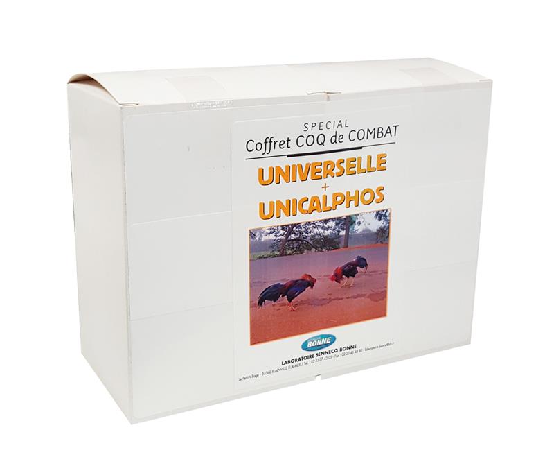 Ce Coffret Coq de Combat est la solution complète pour préparer vos futurs champions. Il réunit deux produits synergiques : Unicalphos (Minéraux) et Universelle (Vitamines) pour lutter contre les carences osseuses, assurer des aplombs solides et booster la croissance en phase critique ou au sevrage.