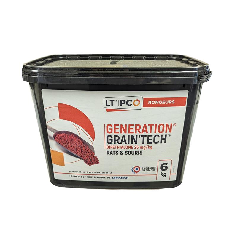 Le GENERATION GRAIN'TECH offre une formulation innovante et unique sur le marché. Ce produit, issu de la gamme professionnelle LT PCO, a été développé pour répondre aux besoins des applicateurs confrontés à des rongeurs méfiants ou disposant d'une abondance de nourriture alternative.