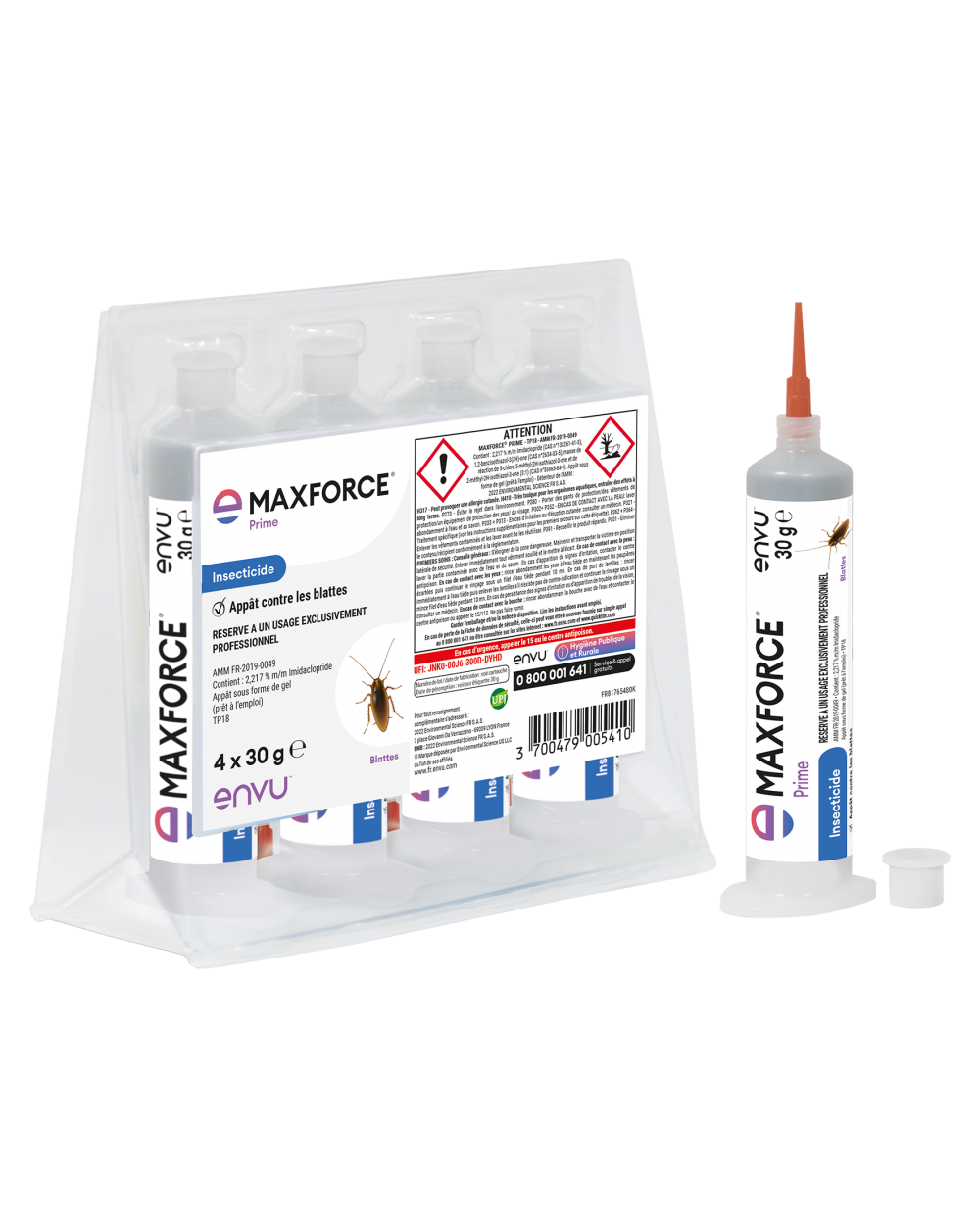 Le MAXFORCE® PRIME est un gel insecticide de pointe conçu pour l'élimination radicale des blattes et cafards. Grâce à sa formule exclusive à haute appétence, il attire les nuisibles même dans les environnements riches en nourriture, garantissant une protection continue jusqu'à 12 semaines.