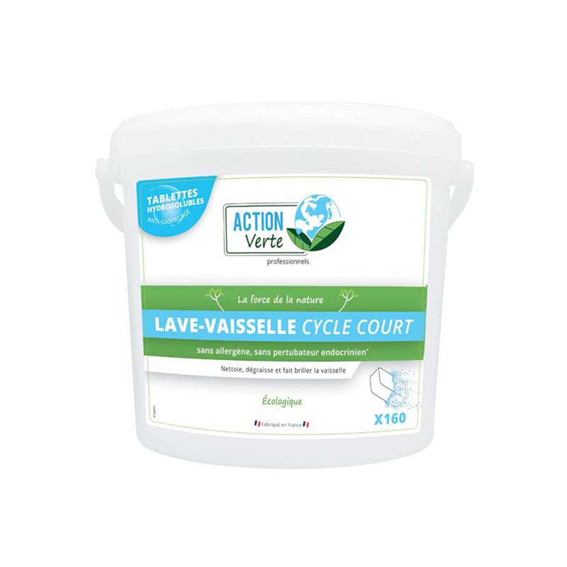Pour les professionnels de la restauration ou les particuliers pressés, Action Verte propose une solution de lavage haute performance adaptée aux contraintes de temps. Ce seau de 160 tablettes est conçu spécifiquement pour les cycles courts, garantissant une dissolution rapide et une action immédiate.