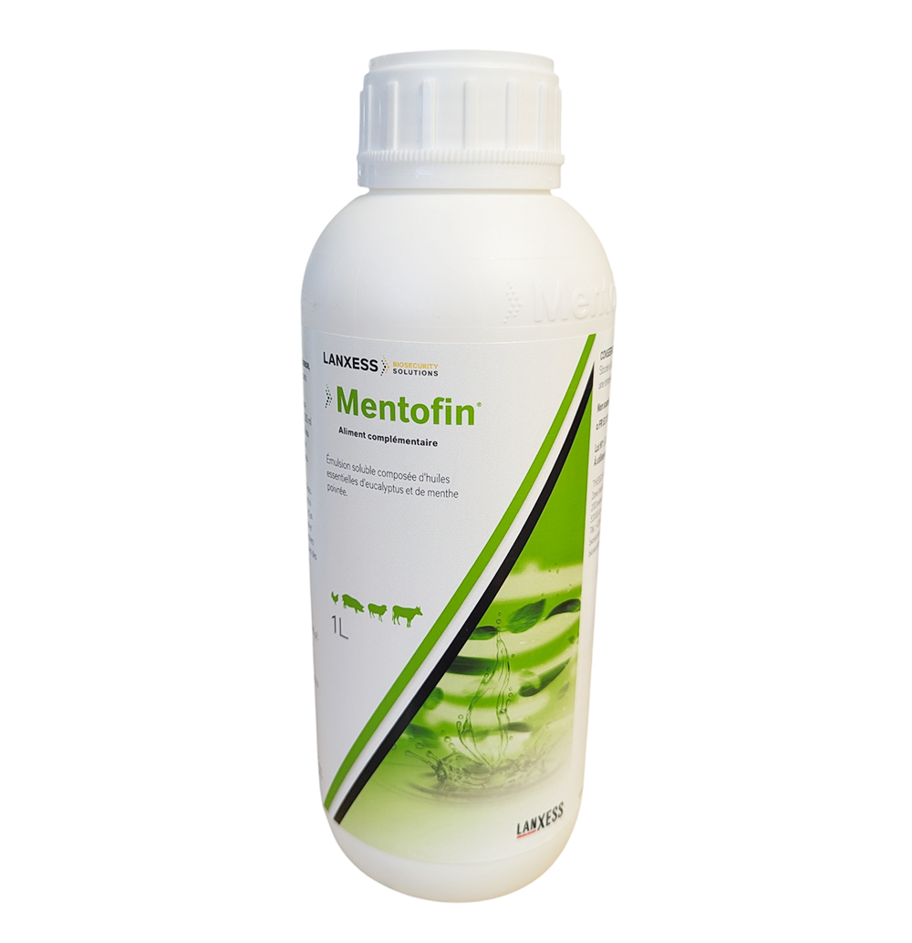 Mentofin® est une émulsion soluble hautement concentrée à base d'huiles essentielles d'eucalyptus et de menthe poivrée. Cet aliment complémentaire est spécialement formulé pour améliorer le confort respiratoire et la vitalité des animaux d'élevage (volailles, porcs, ovins, bovins). Polyvalent, il s'utilise aussi bien dans l'eau de boisson que par pulvérisation pour assainir l'atmosphère des bâtiments.