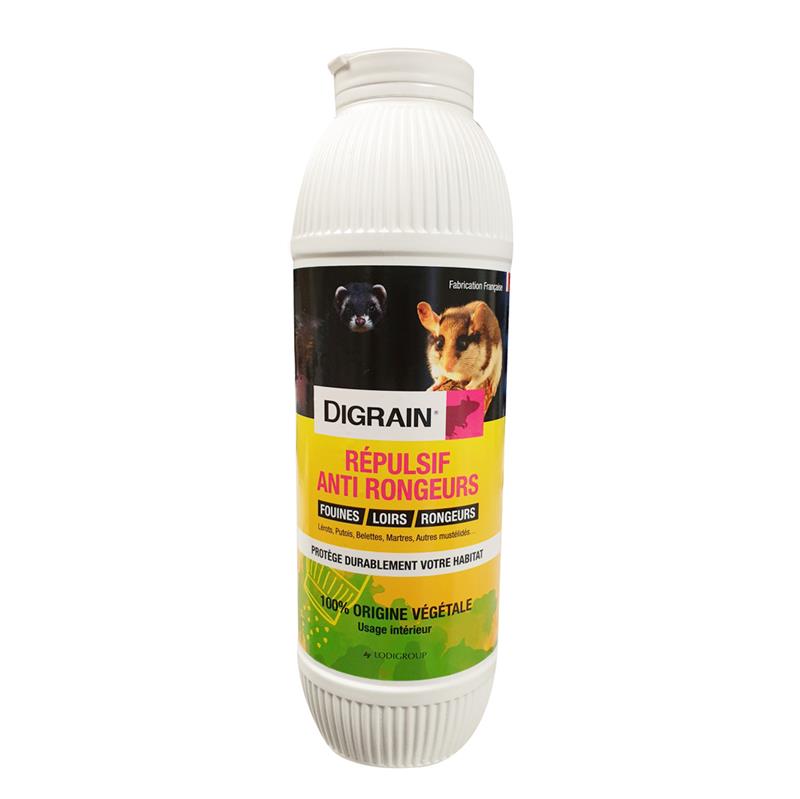 Le Digrain Répulsif Anti-Rongeurs est une poudre prête à l'emploi composée de substances d'origine naturelle pour une protection efficace de votre habitat. Conditionnée en flacon poudreur de 500g, elle agit immédiatement pour éviter l'installation des nuisibles et protéger vos bâtiments des dégradations et nuisances sonores.