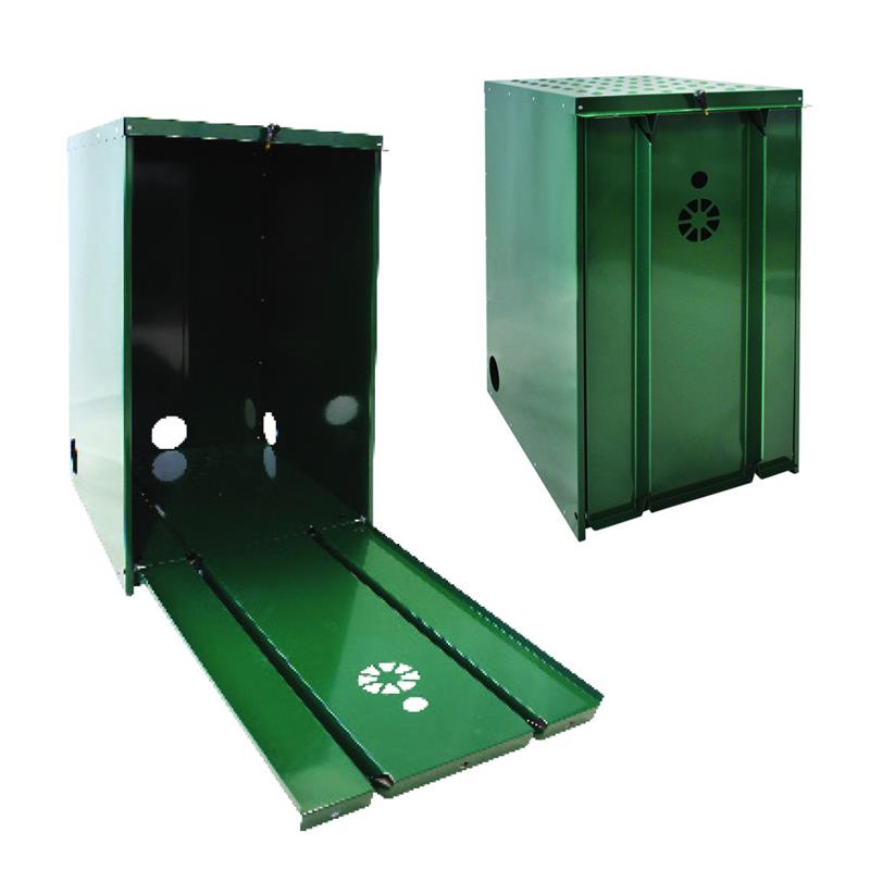 La finition verte de cet Ekobox A a été sélectionnée pour offrir une intégration paysagère optimale. Elle permet de dissimuler le piège dans les buissons ou les haies, limitant ainsi le vandalisme ou la curiosité des passants. De plus, la structure est pensée pour :